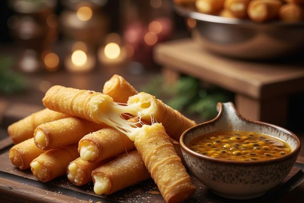 Traditional Latin American pastry spears filled with melted white cheese and fried until golden. Served with an exotic sweet and sour passion fruit dipping sauce.